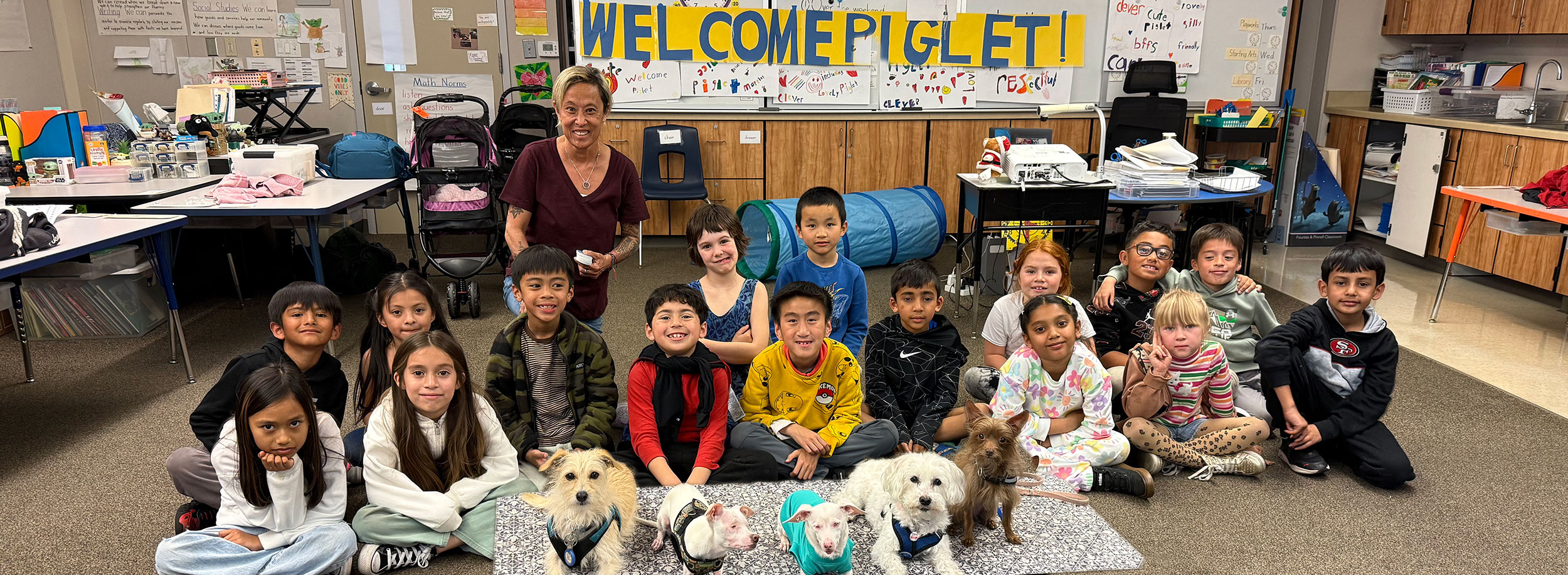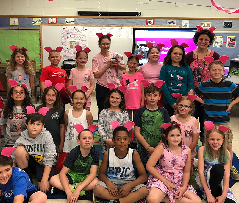 Piglet Mindset® Educational Program is a collection of lesson plans and educational materials that feature Piglet, the deaf blind pink puppy, and his seven rescued dog siblings to teach children to: